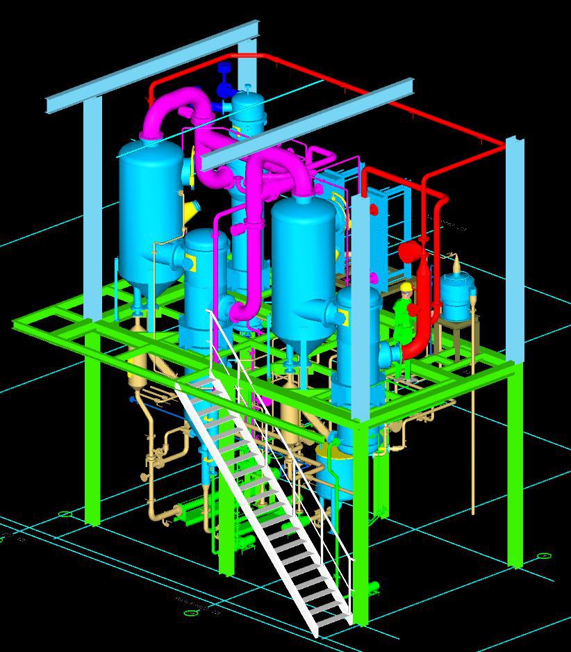 2-effect natural circulation evaporation and crystallisation plant for the removal of salt (NaCl) from soy sauce
