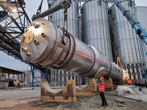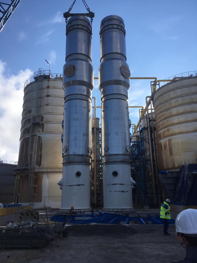 Installation of the calandrias of two falling-film evaporation plants with mechanical vapour re-compression for wheat starch effluent