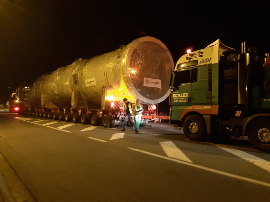 Auf dem See- und Landweg steht ein weiterer Schwertransport kurz vor dem Abschluss. Speziell der große Fallstromverdampfer zur Aufkonzentrierung von Getreideschlempe erforderte eine logistische Meisterleistung, um pünktlich auf der Baustelle einzutreffen und von einem 1.500 Tonnen Kran eingehoben zu werden.